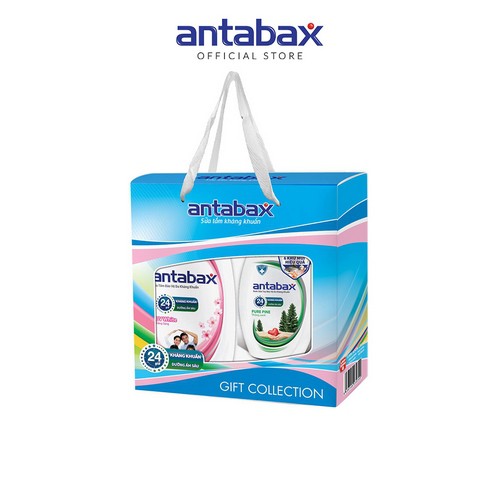 - Hộp quà mỗi chai Sữa tắm Antabax 900ml tặng kèm 1 chai sữa rửa tay Antabax 250 ml
